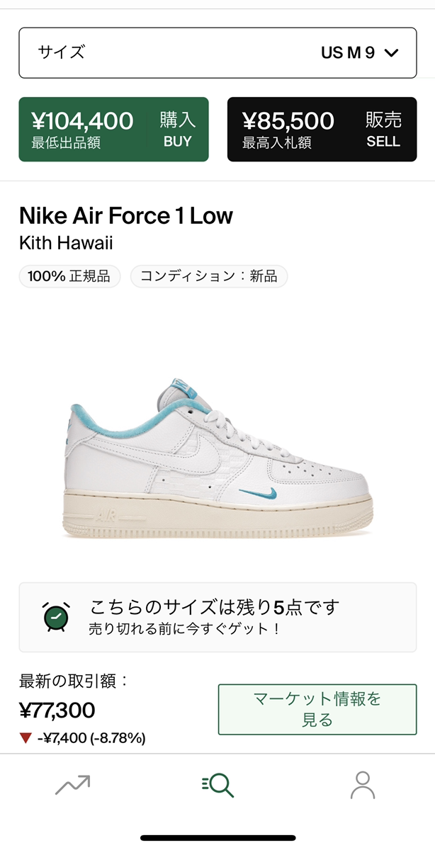 Nike Air Force 1 Low Kith Hawaiiリセールで買うタイミング迷う・・・Stockxで買うしかないのか。スニダンとか国内リセールどこか出てるのかな